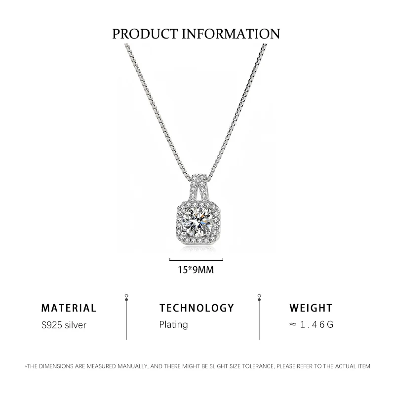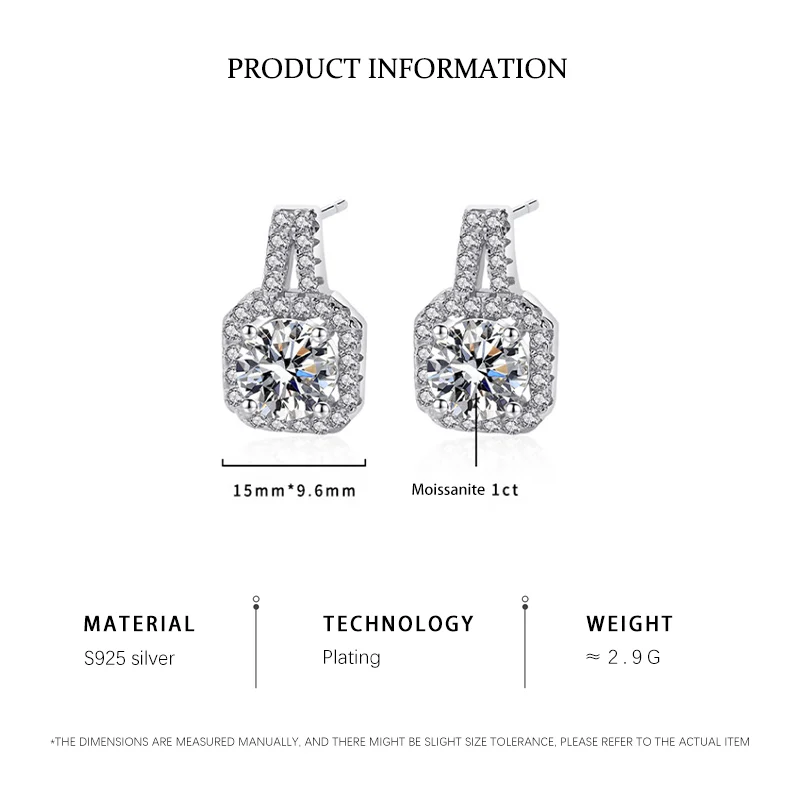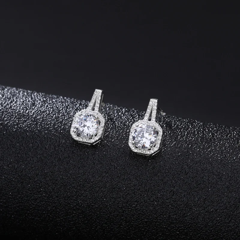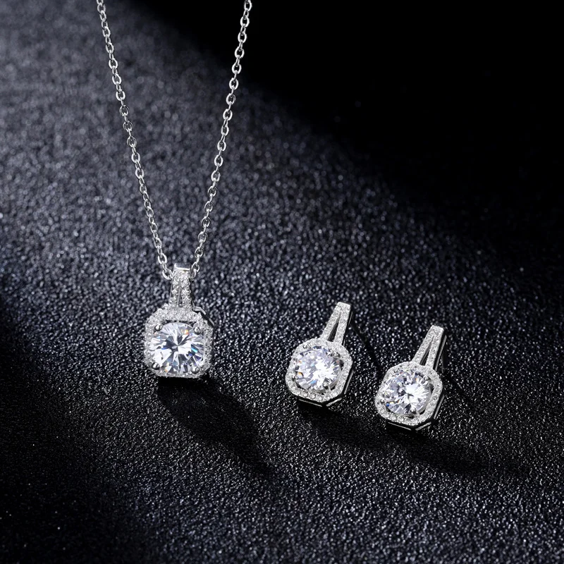 Luxury 925 Sterling Silver Square Diamond Moissanite Pendant Necklace Earrings Bridal Jewelry Set for Women