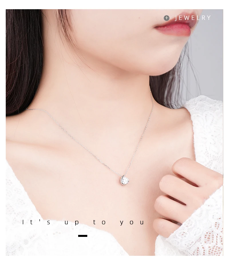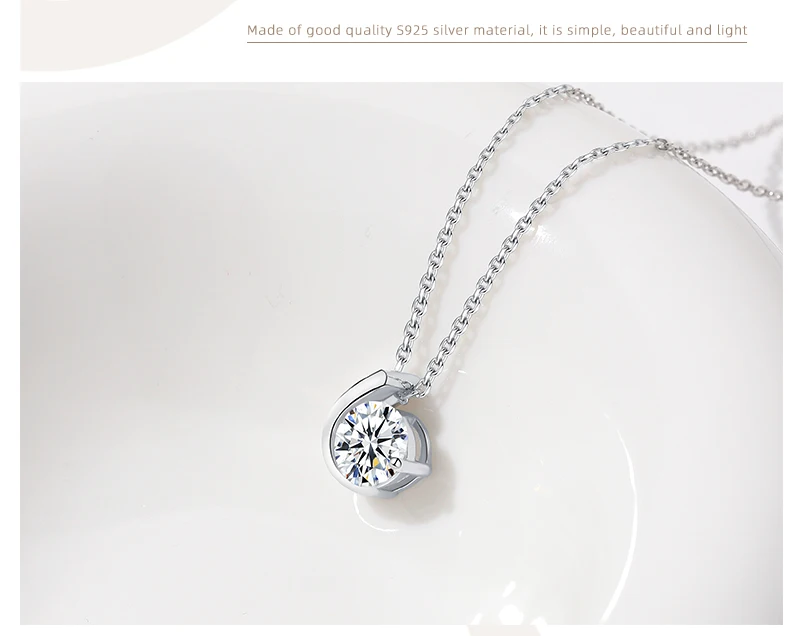 Fashion Jewelry 925 Sterling Silver Elegant Design Round Shape Moissanite Pendant Necklace for Women